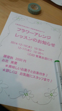クリスマスに向けて・・・ 2014年11月10日リードあざみ野 コメントする こんにちわ クリスマスリース教室のお知らせです♪ 生花を使ったアレンジレッスンとなります 定員4名様 詳しくは お気軽に店舗スタッフ または お電話にて お問合せいただけたらと思います あざみ野店 045-482-6651青葉台店 045-984-7333 活版印刷によるクリスマスカードも 仕入れてきました!! 味わい深い雰囲気を ぜひぜひぜひ お店でご確認くださいませ LEAD みうら 共有: X で共有 (新しいウィンドウで開きます) X Facebook で共有 (新しいウィンドウで開きます) Facebook いいね 読み込み中… 関連
